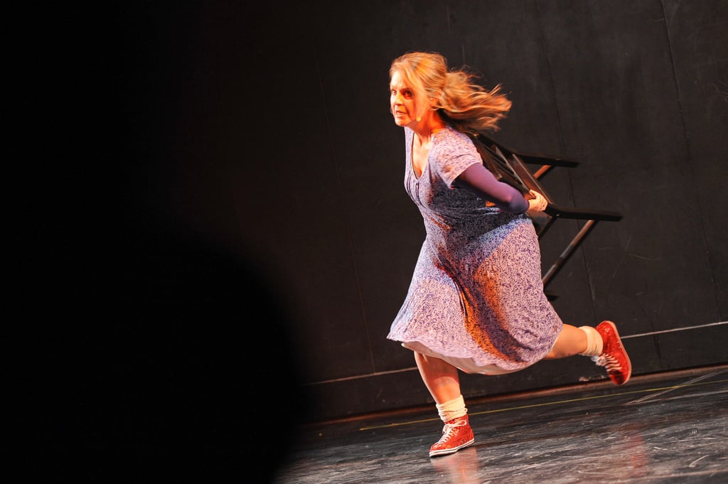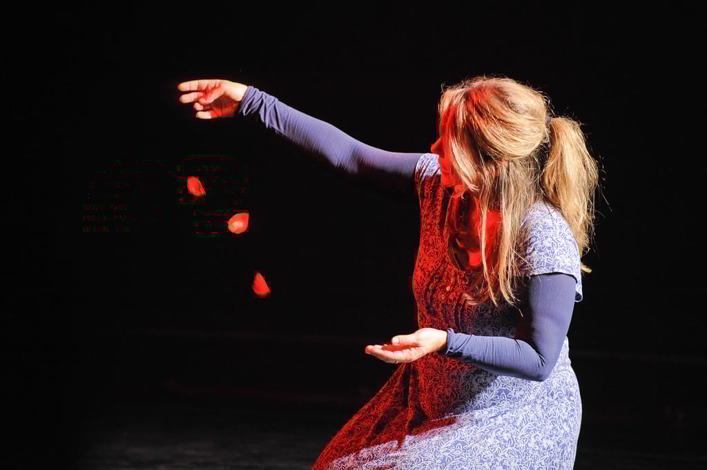 Vorhang auf. Sie steht im dunklen Raum ...klopfendes Herz, Geräusche der Nacht ...Sie ist alleine und lauscht....Fetzen der Erinnerung, Melodie der Sehnsucht.....tippel tippen, klopf klopf. Sie ist die Chanteuse und singt Strophen eines vergessenen Gedichts ....Nebelschwaden, Wellen der Wehmut. ...Sie ist die namenlose Reisende und tanzt irgendwann durch die Gassen...taptap ... Rhythmus des Schicksals, sie zeigt auf den Mond in die Tiefen des Traums. Sie ist ein Mädchen mit roten Schuhen und einem Dreirad. Wehende Windböen, quietschende Reifen.
